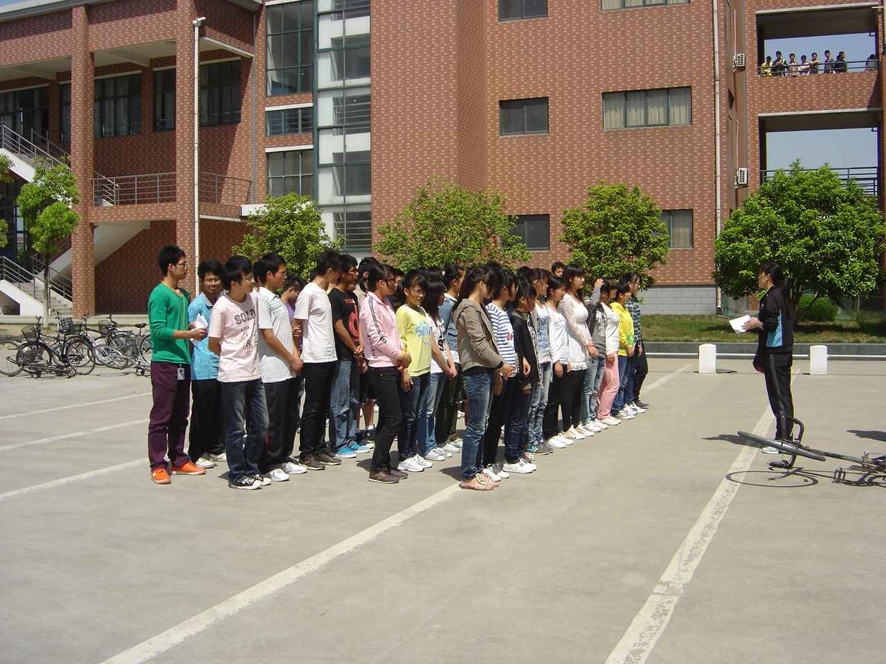 为了做好此次的演练工作,4月25日下午5:00陈刚老师在学院会议室召开了参演学生和相关工作人员会议,详细讲解了演练的时间安排、发令指令,以及整个演练过程中楼层疏散通道应设警禁区、防止非参演人员进入演练区域等注意事项,经过前期精心的准备,整场演练于27日下午1:30准时开始。陈刚首先向参与演习的人员发布地震信号,同学们迅速反应,采取了积极有效的避震方法,选择了支撑性良好的室内设施和承重墙的墙角进行自我保护,同时安全疏散员立即打开教室门保持畅通。30秒后,震后疏散指令响起,同学们迅速进入震后紧急疏散阶段,将书本等物品顶在头上以保护头部,并迅速离开教学楼。整个疏散过程用时极短,并且井然有序,所有人员均在预订时间内安全撤离。同学们在5号与6号教学楼之间的空地整理队形报数。