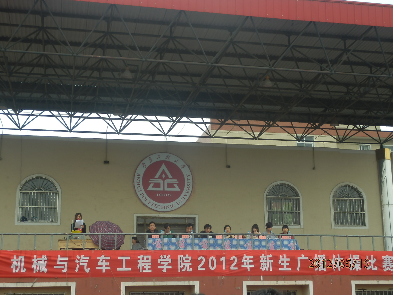 为丰富同学们的校园文化生活,培养集体荣誉感,机械与汽车工程学院于5月19日下午在田径运动场举行了2012级广播体操比赛。担任此次比赛评委是体育学院金庆红、王建老师,学院党委副书记周怡、辅导员陈刚、孙霞老师观看了比赛。