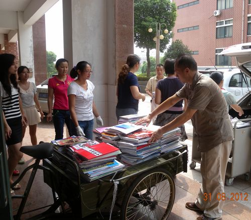 这次劳动主要针对暑假期间到馆的新期刊,为了能让这些期刊在开学第一时间及时上架供广大读者阅览,支部组织了几辆私家车将上千册加工好的期刊从西图书馆运到东图书馆。由于东图书馆期刊阅览室位于六楼且没有电梯,全体党员不分性别和年龄,不畏炎热,徒手将所有期刊从一楼搬到六楼,并摆放整齐。虽然党员们个个汗流浃背,但看到自己的劳动成果时,都露出了喜悦的笑容,劳动过程中充分体现了党员同志们不怕苦、不怕累的团结协作精神。