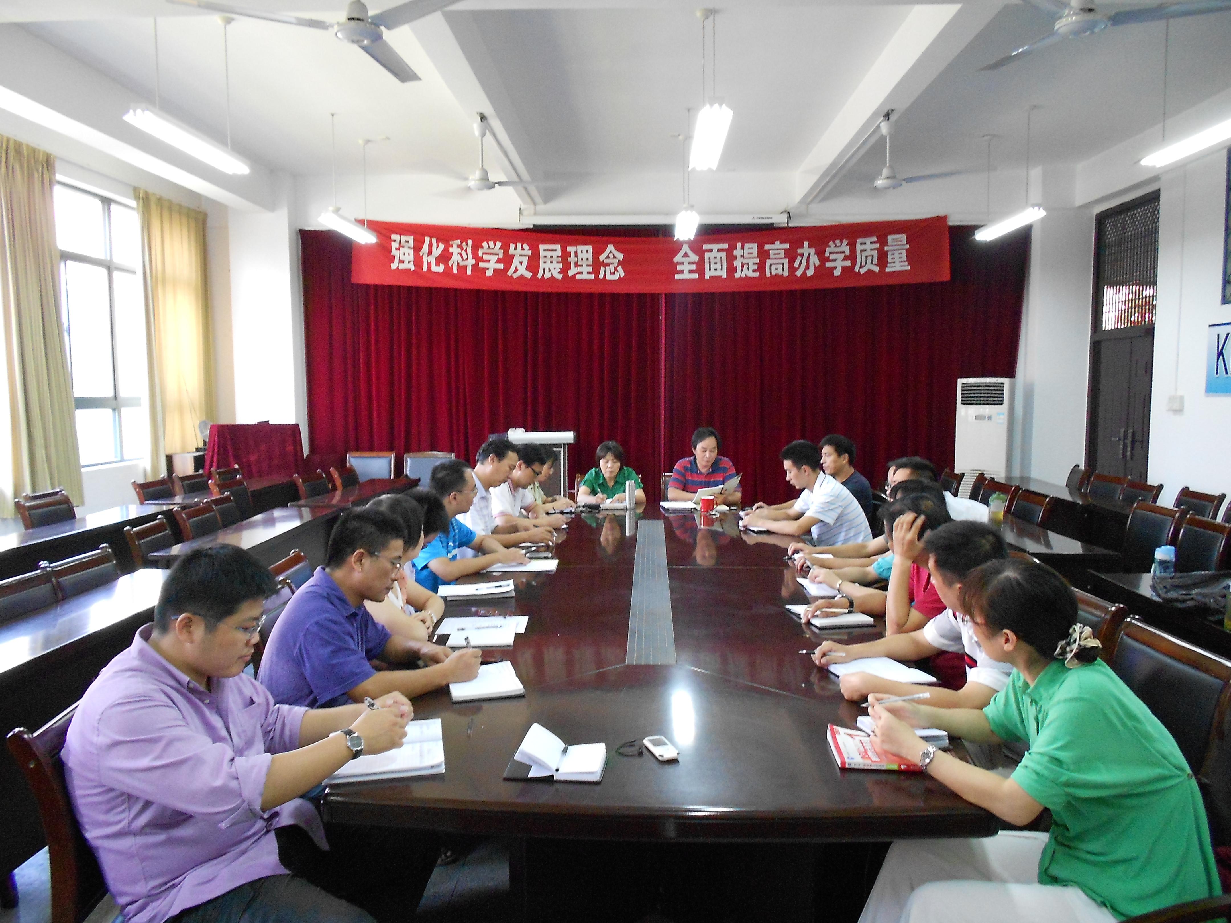 为深入贯彻落实学校2012年暑期教学工作会议精神及要求, 9月5日下午外国语学院召开了以“深入贯彻落实学校教学工作会议精神,进一步提升高素质应用型外语人才培养质量”为主题的教学工作会议。外国语学院党政领导,各系部负责人,院教学、行政、科研秘书及骨干教师出席了本次会议。