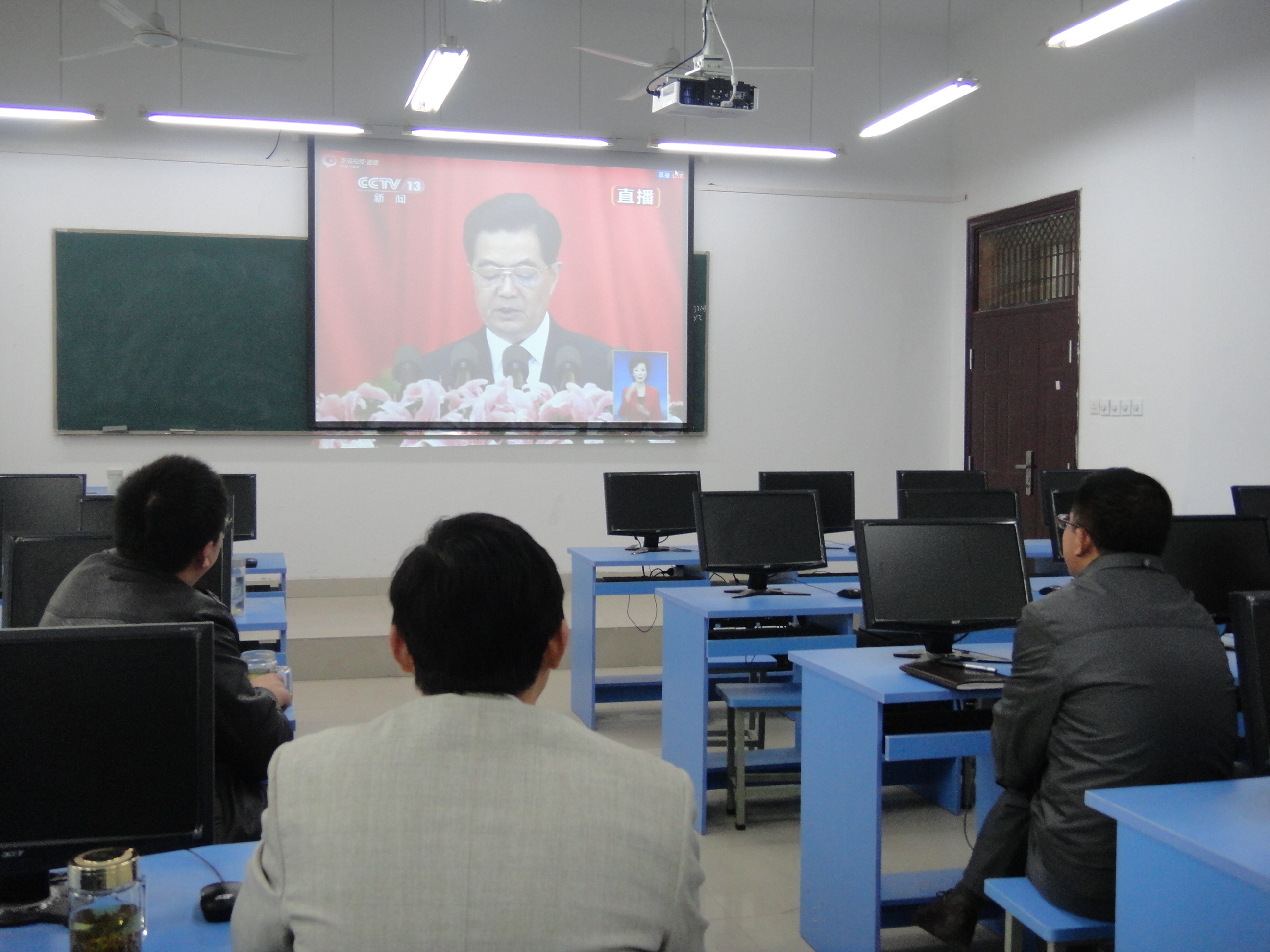 根据学校党委的布置,建筑工程学院党总支高度重视,精心组织,在11月8日上午9时,组织学院中心组成员集体收看党的十八大开幕式盛况。