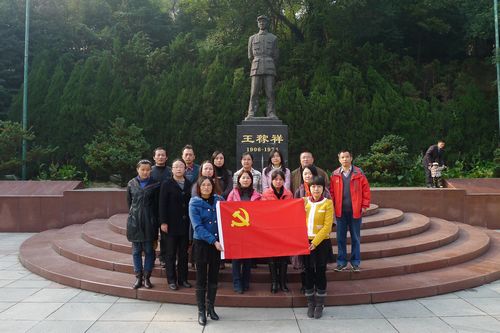 在王稼祥纪念馆广场上,图书馆党支部首先举行了庄严隆重的新党员入党宣誓仪式,同时老党员也重温了入党誓词,接下来全体党员瞻仰了王稼祥铜像并与之合影留念。