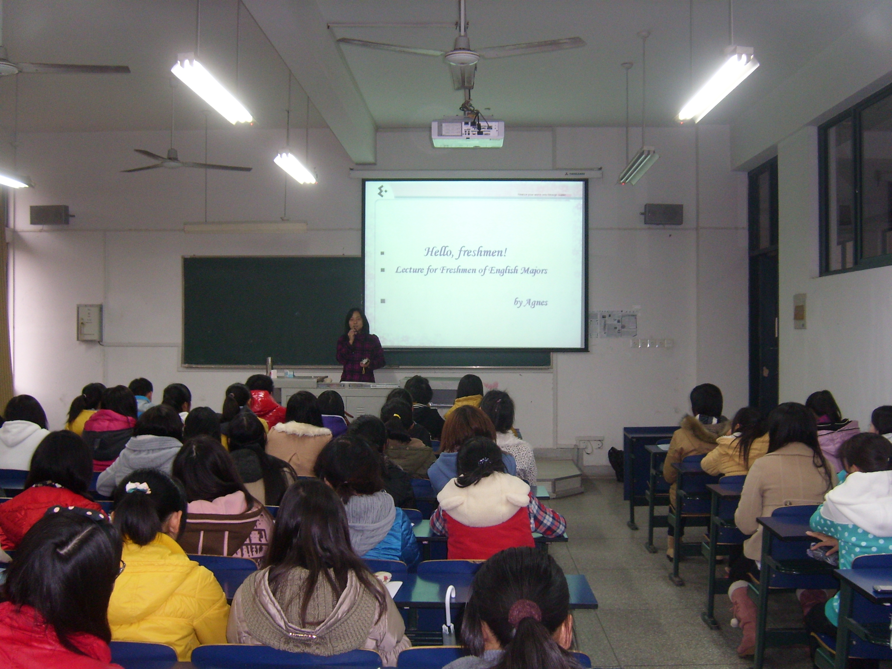 为了让同学们更清晰地把握专业学习的方法和思路,汪老师首先从大一新生中普遍存在的实际困惑开始做引导,如:“高中和大学学习的区别在哪里?”、“英语专业和非英语专业的区别在哪里?”、“大学该学什么?”、“我将来能干什么?”等等。针对这一系列问题,汪老师并不作出直接回答,而是给出不同的面对态度,从侧面去引导同学们自己思考应该做出何种选择。接着,汪老师又从近几年英语专业发展形势、人才需求等方面做出分析,强调要将自身基础与市场需求相结合,把自己打造成求知型学习者;同时还要善于利用课余时间,充分利用图书馆和网络资源,博览知识,全方位提升自己。