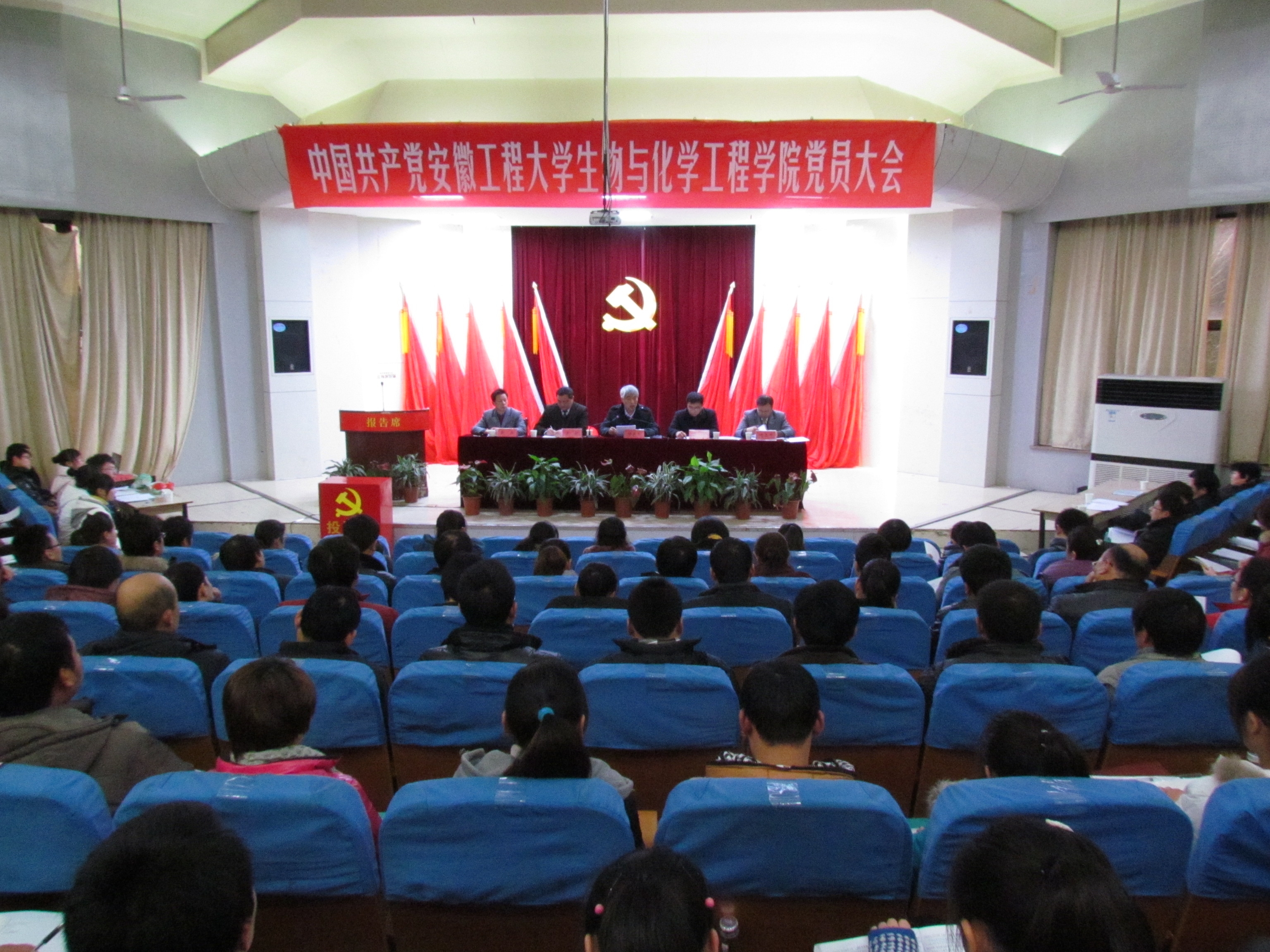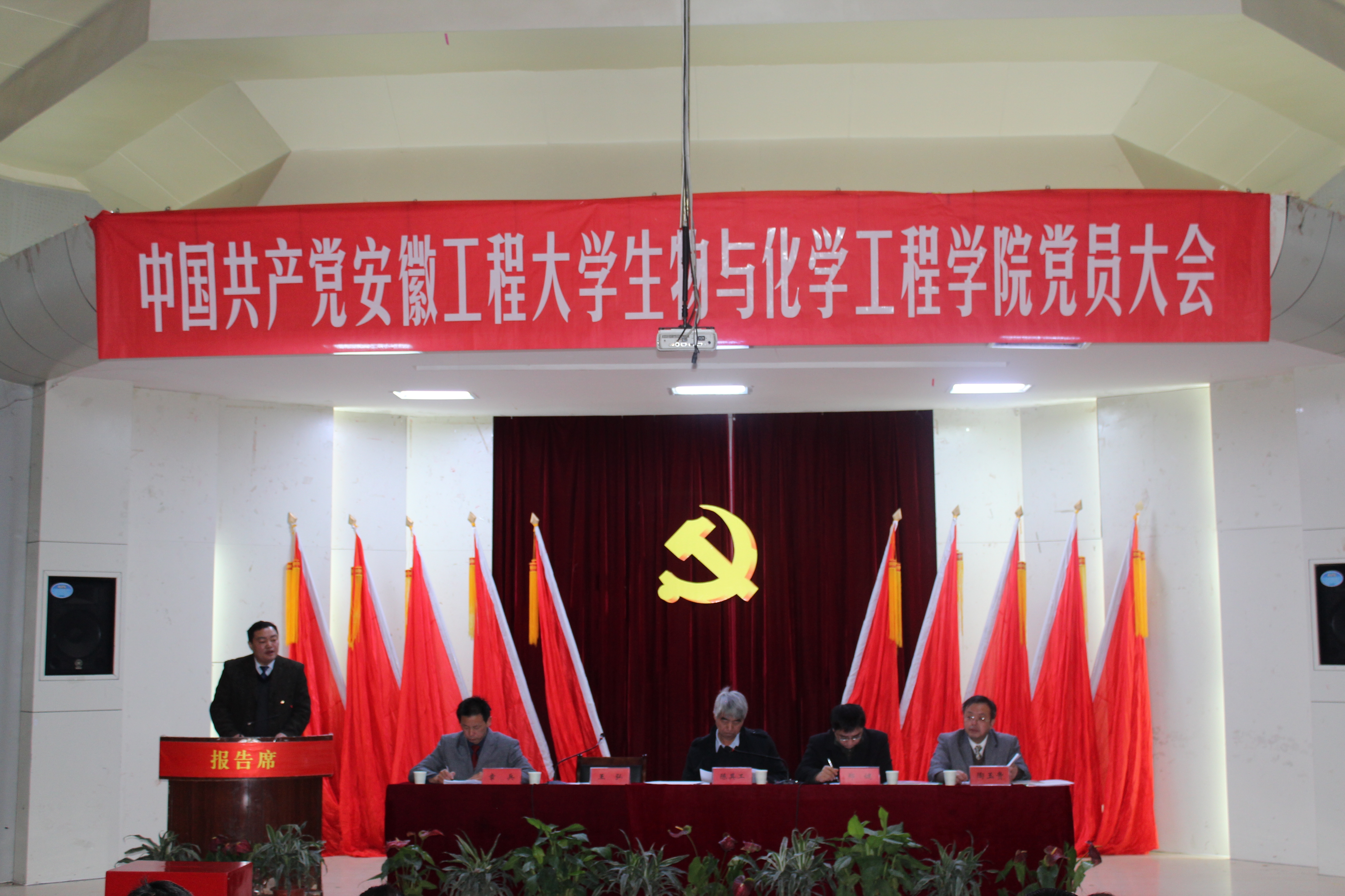 王弘代表学院上一届党委向大会作了题为《坚持科学发展  深化内涵建设  为实现做强生化学院的目标而努力奋斗》的工作报告。