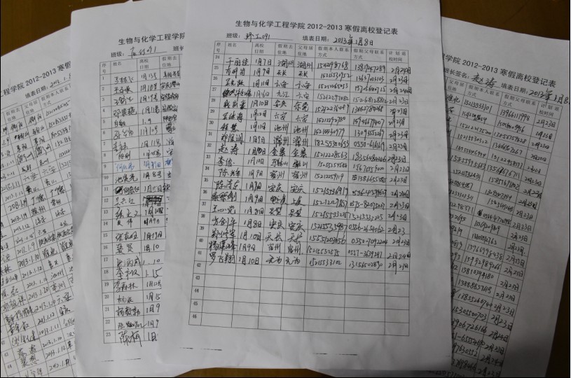 连日来,生化学院为贯彻落实李震副校长关于学校安全教育工作会议精神,通过召开诚信考试、安全教育主题班会,微博、QQ群、飞信提醒,填写寒假离校登记表、诚信考试和冬季防火签名承诺等形式,不断强化学生安全意识,提高自我防范能力,要求学生切实做到对自己负责、对他人负责,对宿舍负责,有效防止安全事故发生,确保人身和财产安全,度过一个欢乐、祥和、平安的假期。