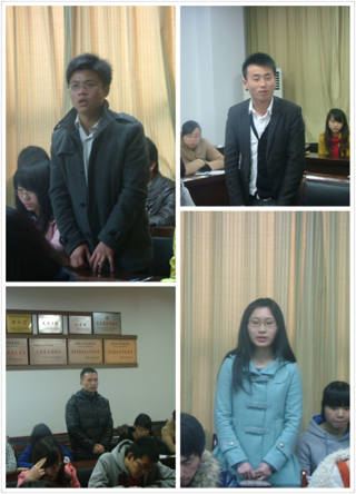 随后,院党总支副书记谈丽华带头作了发言,她感到今天座谈会的形式好、主题实,支部想借此活动强化党员的党员意识,因为党员意识是关乎党员合格与否、先进与否的关键要素。学生党员是学生中的先进分子,学生党员的一举一动,具有示范、引领效应,所以要时刻谨记自己是党员,时刻思考自己该怎么做。国家兴亡,匹夫有责。党员要严于律已,努力奋斗,惟有如此才能建立民主、和谐、幸福的社会。她表示自己作为一名党的书记,是普通党员,更要努力立足本职,认真工作,为党的事业,为实现“中国梦”而奋斗。