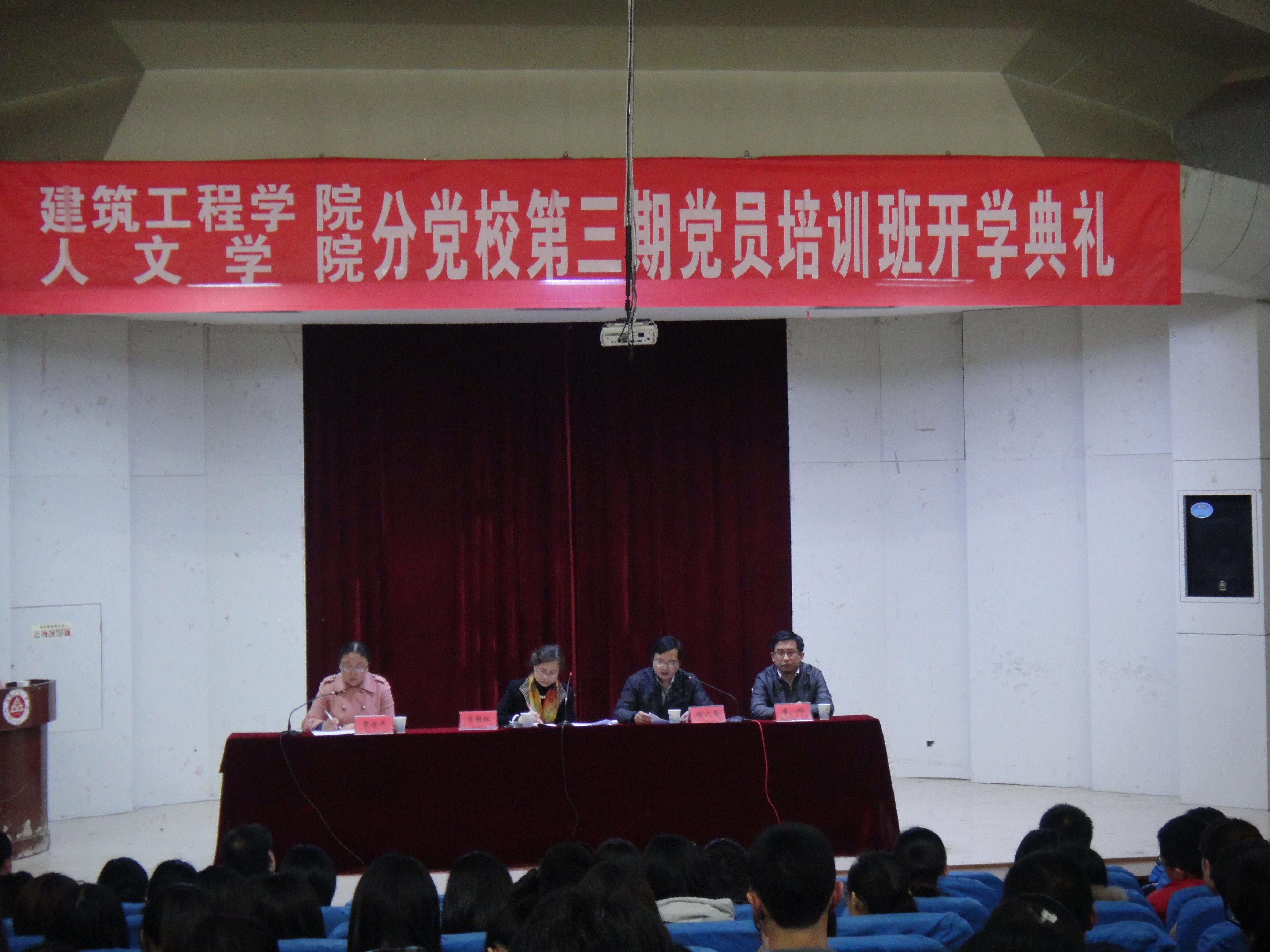 为进一步提高预备党员的思想政治觉悟和理论水平,坚定马克思主义理想信念,帮助预备党员真正从思想上入党,建筑工程学院党总支、人文学院党委联合举办了分党校第三期党员培训班开学典礼。出席此次典礼的有校党委委员、校党委宣传部部长、校党校副校长苏国红老师、建筑工程学院党总支书记徐达奇老师、副书记李烨老师,典礼由人文学院党委副书记章靖平老师主持。