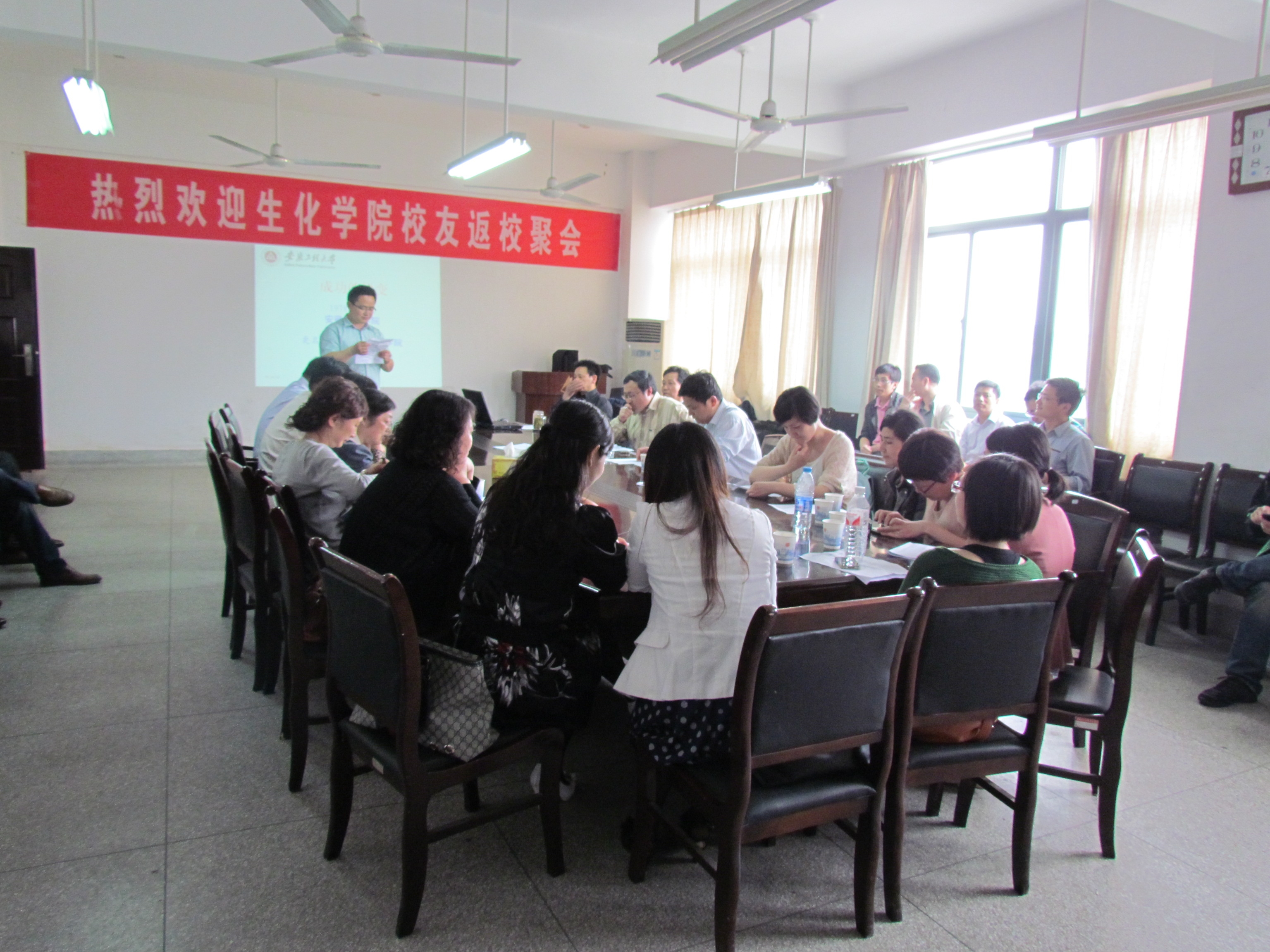 下午,在生化学院会议室,校友们和学院领导、原任课老师进行了座谈交流。学院院长徐建平教授首先代表学院致词,向同学们返校表示热烈欢迎。随后同学们一一回顾了自己在母校的美好时光、并介绍了各自10年来工作、事业及生活情况。他们中有的已发展成立了自己的公司,有的已成为跨国公司大区域经理,其中大多数已成为企业中上层生产与技术管理人员。