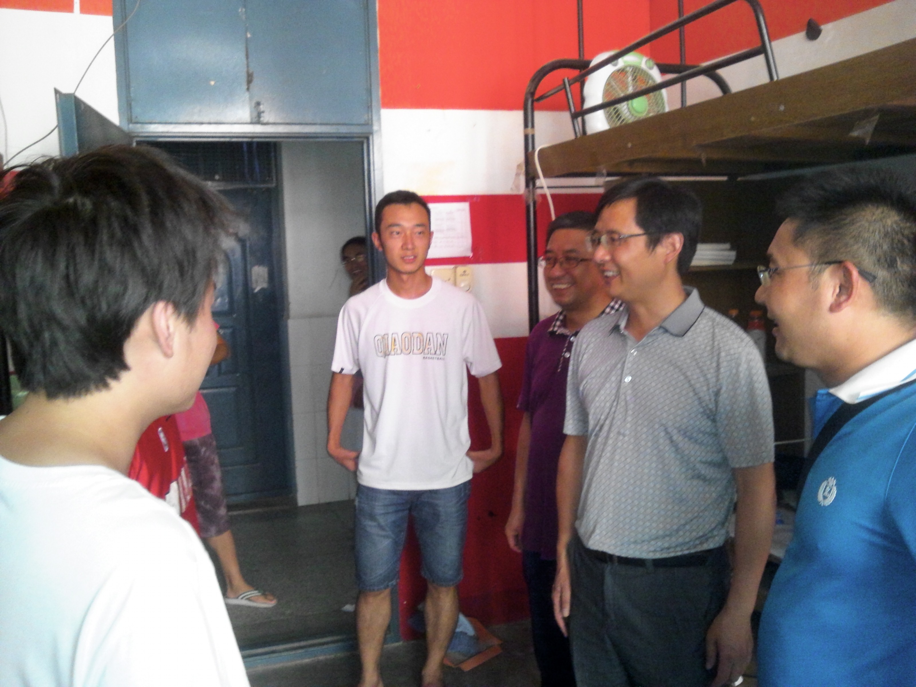 徐达奇在走访学生寝室过程中,详细了解了同学们的思想动态和生活、学习情况,并亲切嘱咐同学们在炎热天气要做好防暑降温工作,加强自我保护意识,在保证宿舍通风的同时加强安全措施,希望同学们能科学合理地安排时间,高效完成暑期既定计划等,度过一个舒心、愉快的假期。