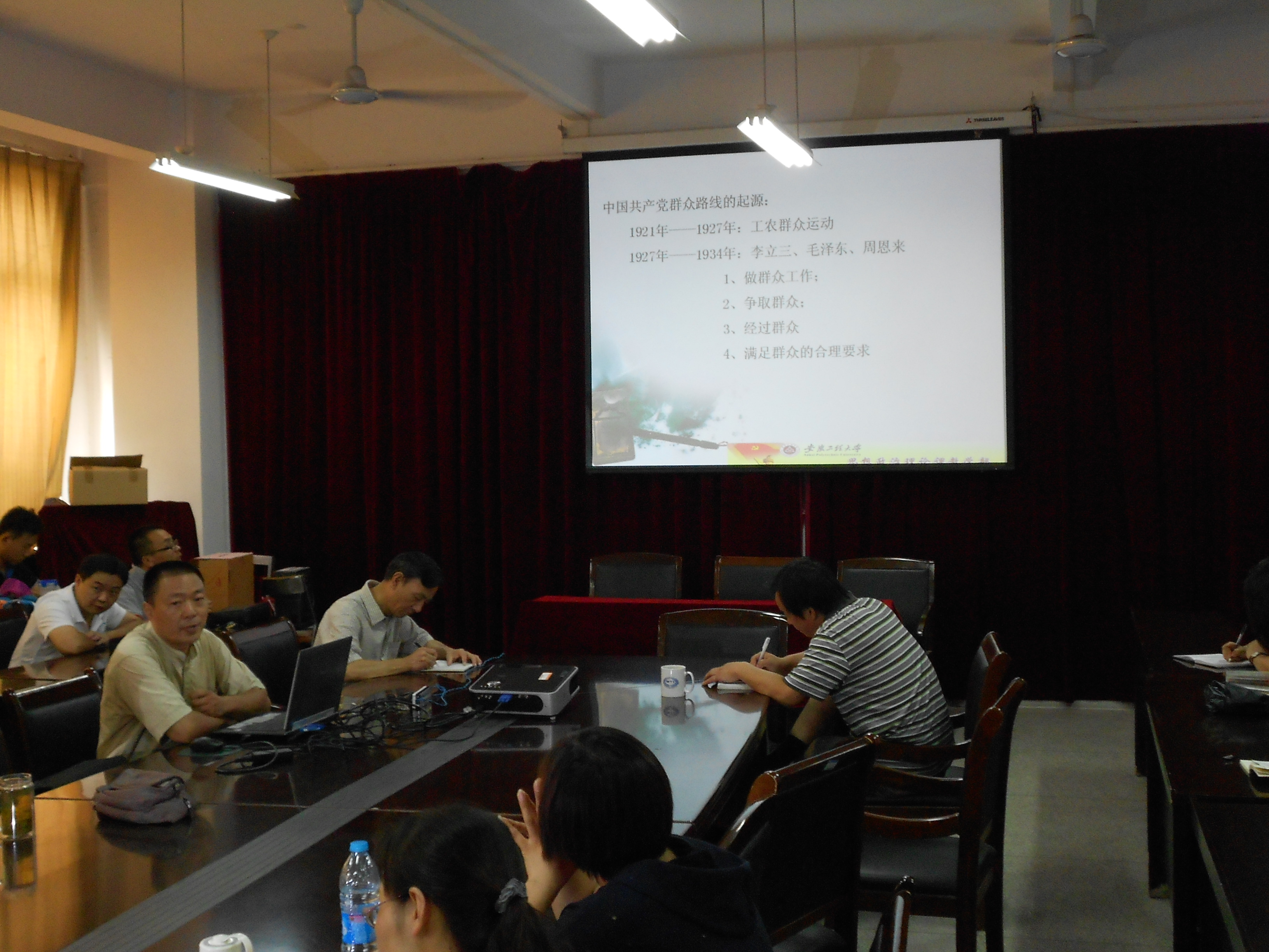 群众路线是毛泽东思想的活的灵魂的三个基本方面之一,是中国共产党最根本的工作路线。坚持党的群众路线,是我们党在长期革命和建设中制胜的法宝。徐东辉老师围绕中国共产党一切为了群众,一切依靠群众;从群众中来,到群众中去的群众路线,结合党的群众路线的形成和发展历程,阐述了群众路线的丰富内涵和现实意义,为学院教工党员上了一堂生动的理论教育课。会后,党员教师纷纷表示受益匪浅。