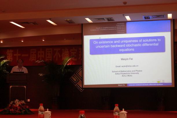 7月27至31日,由中国运筹学会不确定系统分会主办的第十一届中国不确定系统年会暨第十五届中国青年信息与管理学者大会在河北工程大学召开。本次年会旨在推动不确定理论、智能计算及应用的发展,加强数学科学、运筹学、信息科学及管理科学等学科交叉领域的研究,交流总结近年来我国研究工作者的最新成果,研讨未来发展趋势。来自清华大学、北京大学、天津大学、上海交通大学、美国伊利诺伊大学、中国科学院等50余所高校或科研单位的180余名代表参加了本次会议。会议期间,来自国内外20余个省、市、州的48位代表做了17场大会报告及31场小组报告。我校费为银教授受邀作为本届会议的金融工程领域主席,并作了题为《On Existence and Uniqueness of Solutions to Uncertain Backward Stochastic Differential Equations》的大会报告。