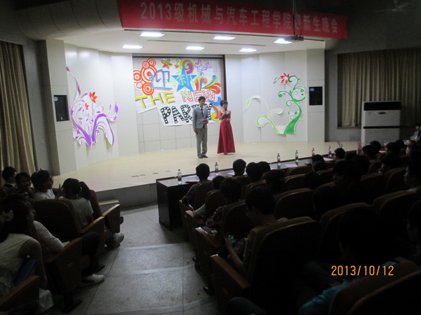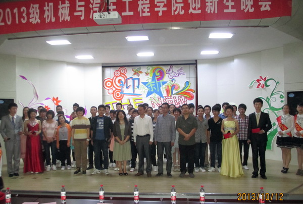 1012晚,机械与汽车工程学院2013年迎新晚会在校学术报告厅隆重举行。院长许德章、党委副书记周怡、团委书记黄炜及新生班辅导员出席晚会。各兄弟学院学生会主席和文艺部部长也应邀出席晚会。