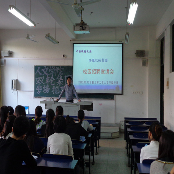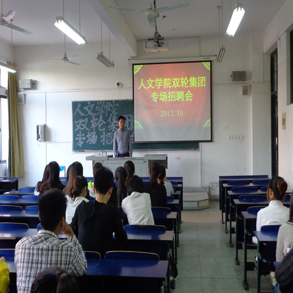 双轮酒业人力资源部副部长顾泓通过一段精彩的PPT向应聘学生展现了企业发展状况以及企业的悠久文化,介绍了本次人才招聘情况和薪资福利条件,使大家对招聘岗位和企业都有了进一步的了解。学生们认真听讲,积极与企业代表互动,进一步了解信息。宣讲结束后在学院会议室对投递简历的学生进行了初试。