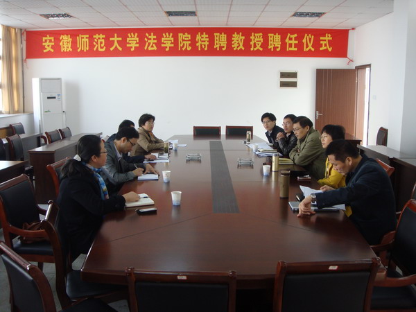 1115上午,人文学院副院长刘军、党委副书记章靖平与公共管理系主任赵宏斌、法学系主任杜蓓蕾一行4人前往安徽师范大学法学院学习交流,受到了安师大法学院党委书记马广见,院长彭凤莲,副院长周俊强、严宏,党委副书记屈光峰等的热情接待,双方举行了座谈会。