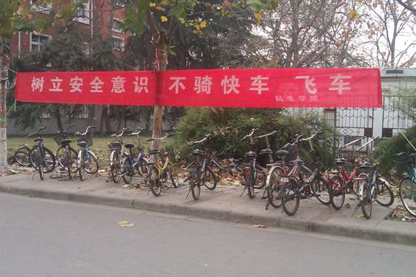 首先,由机电学院团委、学生会牵头向全校同学发出了校内骑行安全倡议书,在校内主要交通路口悬挂标语横幅,提醒广大同学时刻注意交通安全,并联合校保卫处治安科一起制作了宣传展板,以图文并茂的形式进一步警示广大师生同学,希望大家牢记安全的重要性,从自身做起,安全、文明骑行。