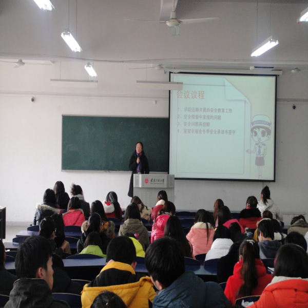 章靖平首先介绍了前期学院开展的有关安全教育相关工作,指出宿舍安全检查中发现的问题,提出整改意见,并对宿舍防火、防骗、学生交通安全、财产安全等问题进行了再教育,要求寝室长不仅自己要带头遵守学校的相关关管理规定,做好自身安全防范,同时对本寝室同学积极发挥安全防范提醒和督查作用,发现安全隐患及时排除或报告辅导员。最后,各寝室长与辅导员签定了《人文学院寝室长学生宿舍冬季安全承诺书》。
