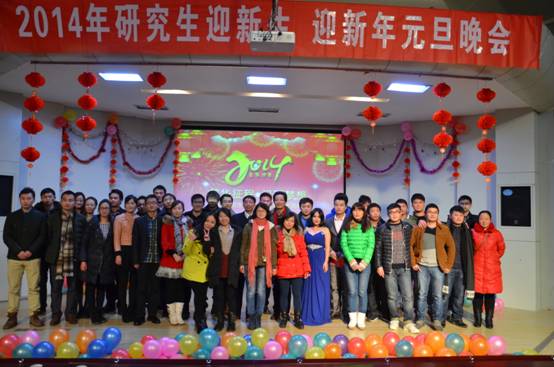 12月28日晚,学术报告厅内流光溢彩,气氛欢乐祥和,“韶华征程,闪硕梦想”——2014年研究生迎新年、迎新生元旦晚会在此隆重举行。我校全体研究生同学参加了晚会,研究生部党总支书记朱文藻、体育学院党总支书记文才新和研究生部老师应邀来到晚会现场观看演出。