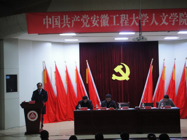 大会在雄壮的国歌声中开幕。校党委常委、纪委书记汪奇燕同志代表学校党委致辞,对大会的胜利召开表示热烈的祝贺。他充分肯定了近年来学院各项事业取得的突出成绩,并提出了三方面的意见:一是要深刻理解,充分认识学院党委换届选举的重要意义。要深刻认识党委换届的根本目的在于凝聚共识、选好班子,要通过换届选举凝聚全体师生的智慧,全面贯彻落实学校“十二五”规划和第一次党代会制定的发展目标和举措。二是要锐意进取,积极投身于实现学院跨越式发展的伟大实践。要善于借助外部资源、善于运用上级政策、善于创造好的制度环境,坚持用科学发展观武装头脑,发挥师生员工的主动性,不畏艰险、迎难而上,为学院各项事业的顺利推进提供有力的思想保证。三是要通过增强应用型文科人才的培养质量和优势学科专业的社会服务能力,来大力提升人文学院的核心竞争力和社会影响力。