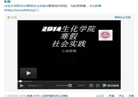 截止到开学,生化学子共发布了970条微博,阅读量达82万人次。