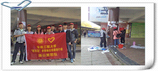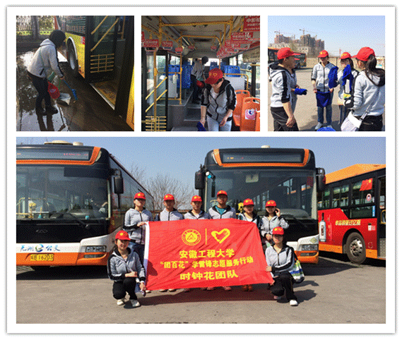 “时钟花”清洁城市:同学们秉着“从现在做起,从自身做起,从身边做起”的精神,渴望在实际行动中进一步提高个人素质,让文明、爱国、爱社会之花由校园伸展至社会。3月23日,志愿者们来到42车公交站,开展义务清洗公交车的活动。他们用汗水为人们提供了干净整洁的乘车环境,发扬了我院大学生吃苦耐劳的精神,同时也为同学们做出榜样。