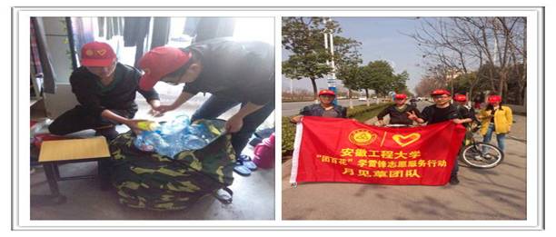 “月见草”微笑送爱心环保活动:目前废弃饮料瓶、塑料瓶给我国环境造成巨大压力,有效回收利用废弃塑料瓶,将节省大量石油资源。团队的7名同学发现校园内随处可见同学们丢弃的各种饮料瓶, 3月16日,他们在校园宿舍楼内回收各种饮料瓶、塑料瓶,实现它们循环利用。