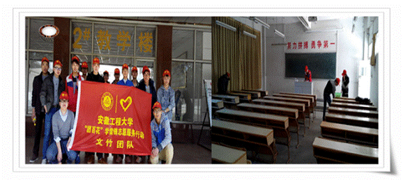 “文竹”爱校清洁:校园的2号教学楼是学生们自发上自习最常去的地方,细心的同学会发现,人多垃圾就多,抽屉里的垃圾常常没人清理,同学们决定学雷锋从身边事做起,3月8日,他们带上扫帚、抹布,来一次大扫除,让教室面貌焕然一新。既方便了他人,也快乐了自己。