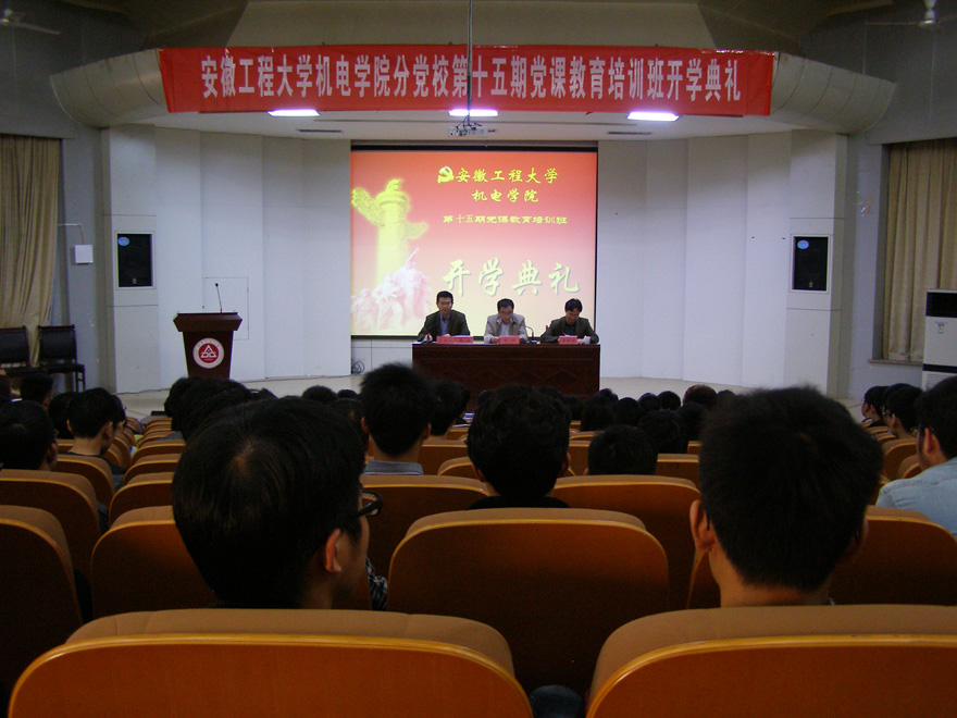 春光明媚,草长莺飞。2014328,机电学院分党校第十五期党课教育培训班开学典礼在学术报告厅隆重举行。校党委常委、组织部部长郑健,机电学院党委副书记郭全根、综合办公室主任韩兵出席开学典礼并在主席台就座。典礼由韩兵主持。