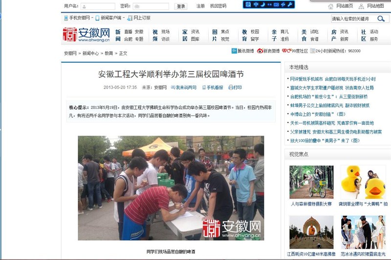 对此,《安徽网》、《安徽网报》、《安徽商报》等媒体都曾第一时间给予报道,随后,人民网、新浪网、腾讯网、搜狐网、网易网等数十家等媒体加以转载,这些关注与报道是对举办啤酒节活动的赞誉,更是对我院构建教学实训体系大力提升就业能力的肯定。