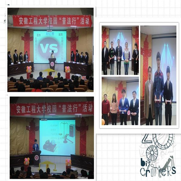 在大学校园环境中形成“以廉为荣、以贪为耻”的良好风尚和文化氛围,不仅是大学生成长成才的自身需要,也是校园廉政文化建设的客观需要,更是社会和谐发展的现实需要。为大力推进校园廉政文化建设活动,着力培育大学生廉荣贪耻、诚实守信的道德观念,根据2014年校大学生文化艺术节活动的总体部署安排,3月份以来,学校启动了“加强自我教育,弘扬廉洁风尚”校园“普法行”系列活动。该活动是由校团委、校纪委联合主办,由人文学院团委承办。校园“普法行”竞赛活动于4月24日晚七点在学术报告厅举行,学院党委副书记章靖平、校纪委办秘书朱洪浪以及法学系多位专业教师出席活动。