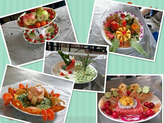 在一个小时的紧张制作和精彩比拼后,水果拼盘大赛在同学们的欢声笑语中圆满结束。优秀选手将参加校水果拼盘比赛。