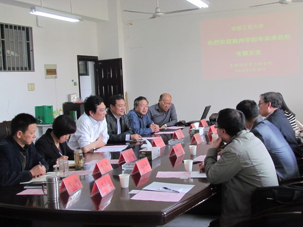 徐建平院长首先对滁州学院汪湘水督导员一行的到来表示欢迎,并对学院的总体情况做了介绍;孙艳辉副院长介绍了滁州学院生物与食品工程学院的学科、科研和师资队伍建设等有关情况;生化学院薛正莲副院长与食品科学与工程系主任季长路分别从学院科研平台和师资队伍建设、食品学科目前学科和平台建设等方面进行了详细介绍。随后与会人员就双方在教学、科研、学科和平台建设中好的做法和经验进行了相互交流和探讨。双方还就联合培养研究生等相关事宜达成初步意向。