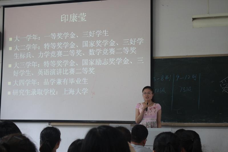 6月4日下午,体育学院“奋斗的青春最美丽”优秀学生成长经历报告会在四教209教室举行。分别来自机械与汽车工程学院、艺术学院和体育学院的五位考取研究生的同学应邀作了一场精彩的成长经历报告会。体育学院除毕业班以外的全体学生聆听了此次报告。体院学院团委副书记王彦青主持报告会。