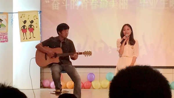 晚会在精彩的开场舞《樱之花》中拉开序幕,动感的节奏、欢快的步伐迅速点燃了现场激情。由教师们带来的经典歌曲《相逢是首歌》,歌声美妙动听,情感真诚细腻,引起了在座所有同学内心深处的共鸣。流畅的太极剑刚柔并济,让喝彩此起彼伏。小品《一张饭卡》激起了同学们对大学生活的回忆。诙谐幽默的音乐情景剧《密谋》伴随着神曲《忐忑》上演,生动的表演让掌声一阵高过一阵。毕业班同学朗诵的《即日启程》表达了对大学四年的怀念和对人生新起点的向往。最后,信管101班同学的合唱《再见》把整台晚会推向高潮。