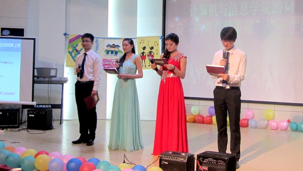 6月8日晚上,计算机与信息学院“奋斗的青春最美丽”欢送2014届毕业生晚会在学术报告厅精彩上演。计算机与信息学院院长周鸣争、院党委书记邬海量、院团委副书记马晓琼、辅导员皇苏斌、罗国旗、刘畅等莅临观看表演。