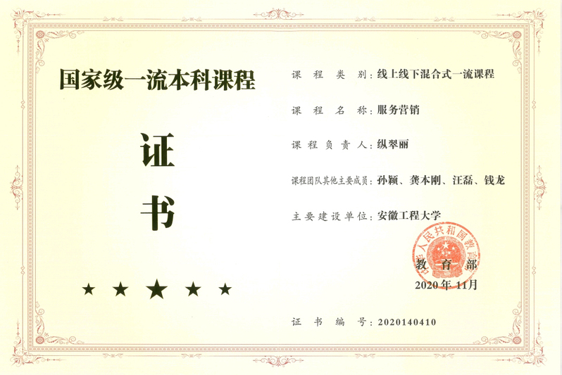 本网讯 纵翠丽,副教授,经济与管理学院市场营销系教师,主讲课程《服务营销》《品牌管理》《营销策划》,首批国家级线上线下混合式一流本科课程负责人,获得首届全国高校教师教学创新大赛全国三等奖、安徽省“智慧课堂教学之星”、安徽省“同课异构”教学竞赛二等奖、安徽省“停课不停学”在线教学优秀案例二等奖等,并获得校课程思政教学名师、先进个人等多项荣誉称号。