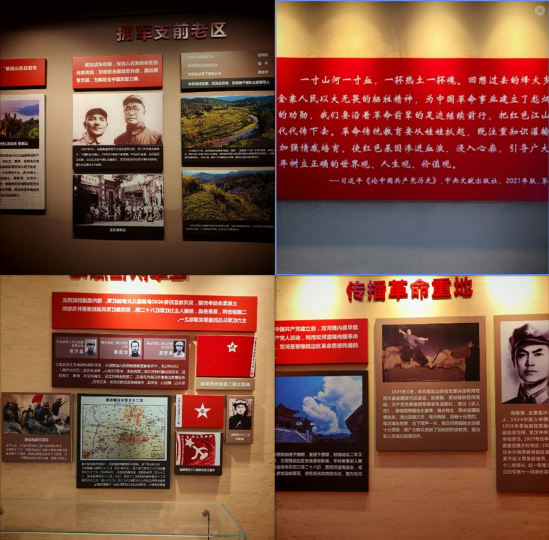 实践团首站踏入双河暴动旧址,党史专家的讲解如时光拨片,将历史风云重现。展柜里,锈迹斑斑的枪械诉说着战斗的艰苦;作战地图上,蜿蜒的红线藏着突围的智慧;烈士遗物旁,岁月沉淀的温度让“牺牲”二字不再抽象。当听闻农民武装以简陋武器对抗反动势力,同学们的脚步慢了,目光凝了,张同学在日记中写下:“泛黄名单上的名字,是山河热血的注脚,让我懂了‘热血换山河’的重量。”旧址的砖石瓦砾间,青春与历史对话,先辈的勇气在年轻心灵里播下火种。