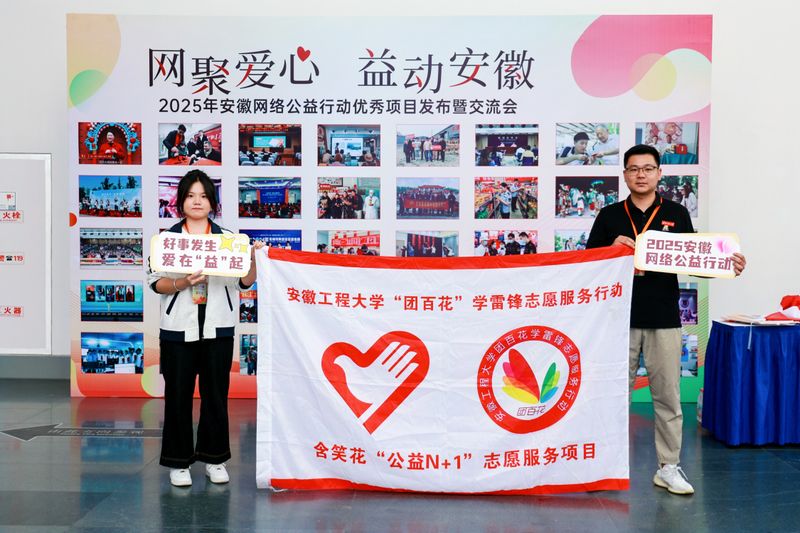 本网讯 9月22日,安徽省委网信办在安徽省美术馆召开“网聚爱心·益动安徽”2025年安徽网络公益行动优秀项目发布暨交流会,对全省15项具有代表性、示范性和影响力的公益项目予以表扬。我校材料科学与工程学院“含笑花‘公益N+1’困境儿童帮扶平台”入选,也是安徽省教育系统唯一入选的项目。