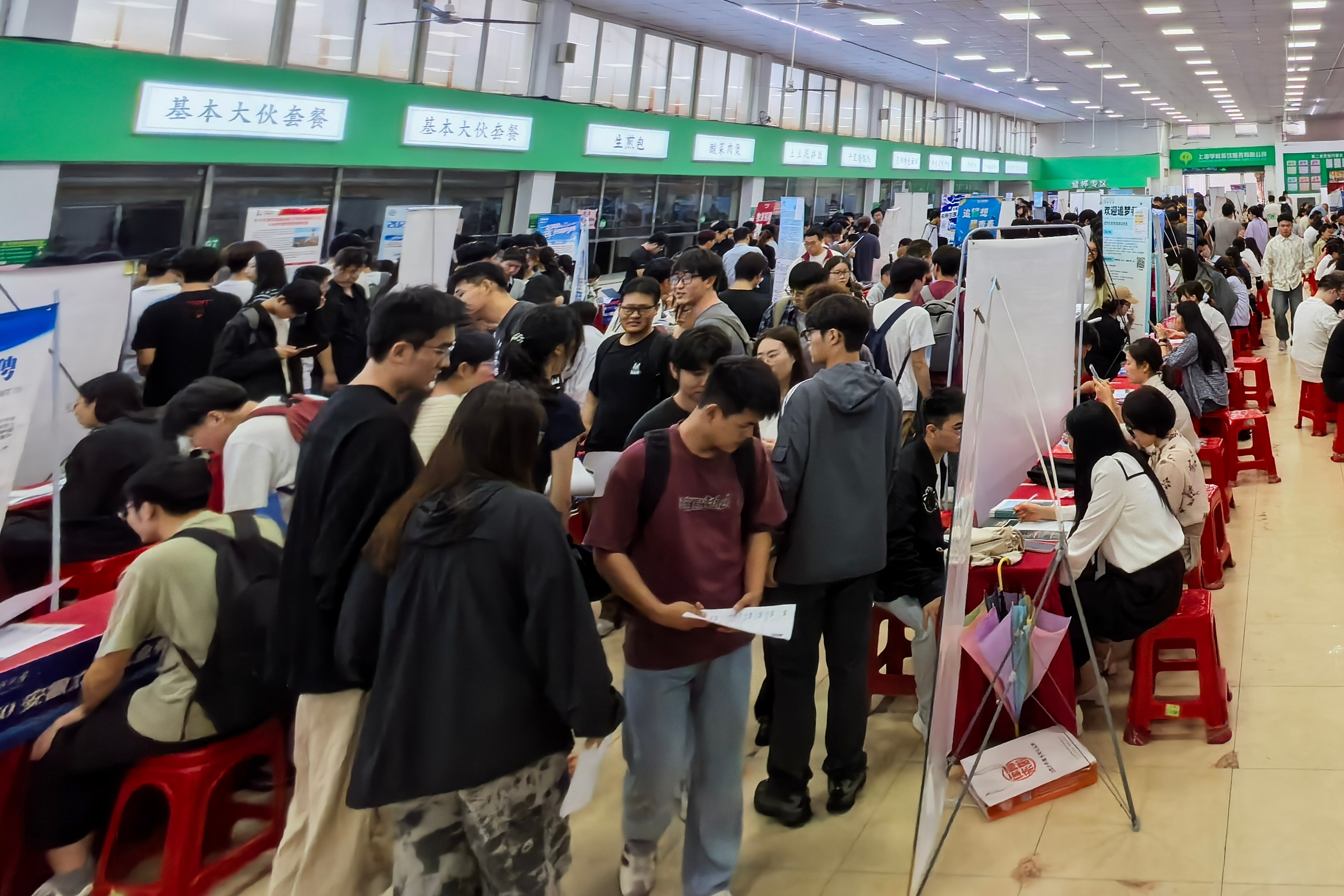 本网讯 9月24日,我校2026届毕业生秋季首场大型双选会在原二食堂内举办,共有247家企业参会,提供就业岗位3800余个,吸引2000余名毕业生前来应聘洽谈。校党委副书记、校长黄友锐深入招聘会现场调研指导就业工作。