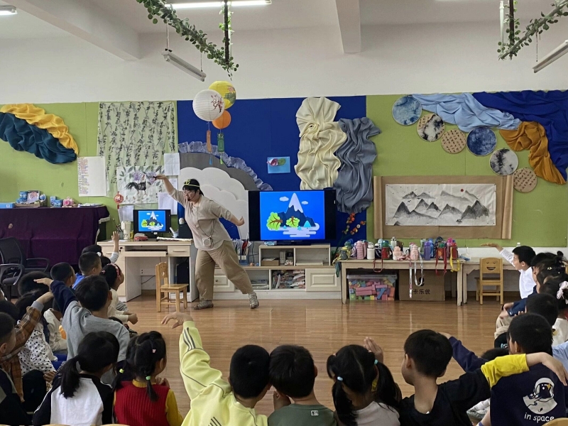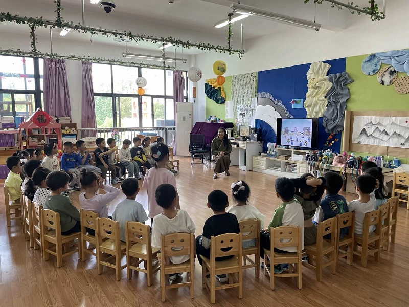 集中教学活动是幼儿获取知识、技能等能力的重要途径。老师们根据幼儿的年龄特点及认知水平,运用游戏化教学手段,让孩子们在游戏中探索,在操作中获取知识。早操结束后,教师邀请家长们一起走进课堂,走进富有童趣而又精彩的集体教学活动。首先是曹老师设计的数学活动《十人快乐大搬家》,将抽象的数字和快乐的游戏相结合,鼓励孩子们自主探索,学习掌握“10”的5种分法,并用清楚的语言表达分与合的过程。在互动的环节,曹老师能够及时给予孩子们鼓励和夸奖,让他们不仅在学习过程中体验数字不同组合带来的乐趣,还在反复操作中牢记10以内的加减法。整个活动流程环环相扣,孩子们沉浸其中。接下来是刘老师带来的音乐活动《猴孙学本领》,刘老师带着金箍棒闪亮登场,她扮演的齐天大圣孙悟空牢牢抓住了孩子和家长们的视线。刘老师带领孩子们学本领、保家园,通过不断练习,孩子们掌握了“火眼金睛”、“巡山”、“砍”、“变”这四个本领的动作和玩法,他们迫不及待想和妖怪PK。活动的最后,教师邀请了家长和孩子们一起游戏,齐心协力、团结一致,共同打败了妖怪!