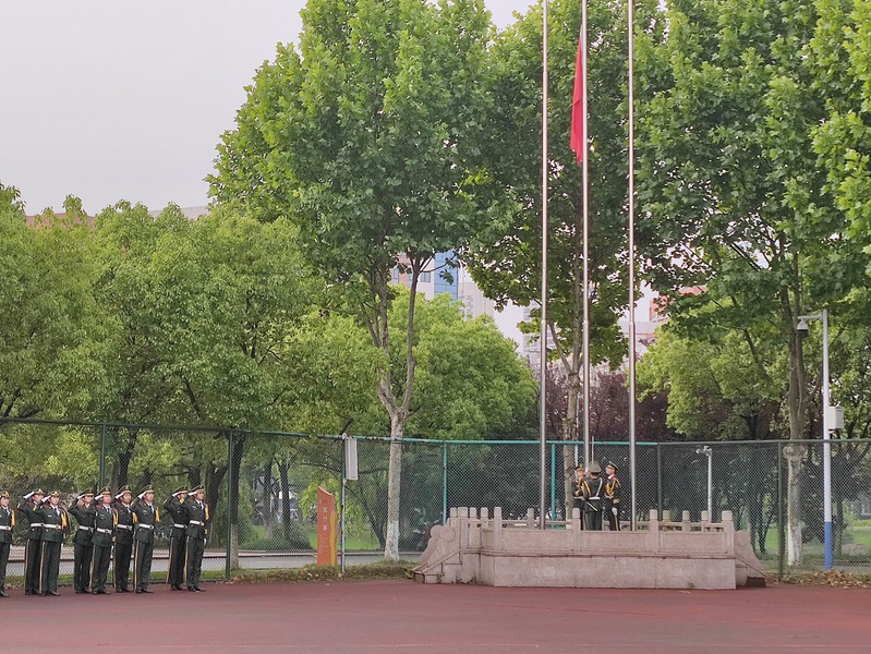 六点四十,升国旗仪式正式开始。伴随着嘹亮的国歌声,鲜艳的五星红旗冉冉升起,全体人员肃然而立、高唱国歌,一同面向国旗行注目礼,心中激荡着对祖国无限的热爱和崇高的敬意。