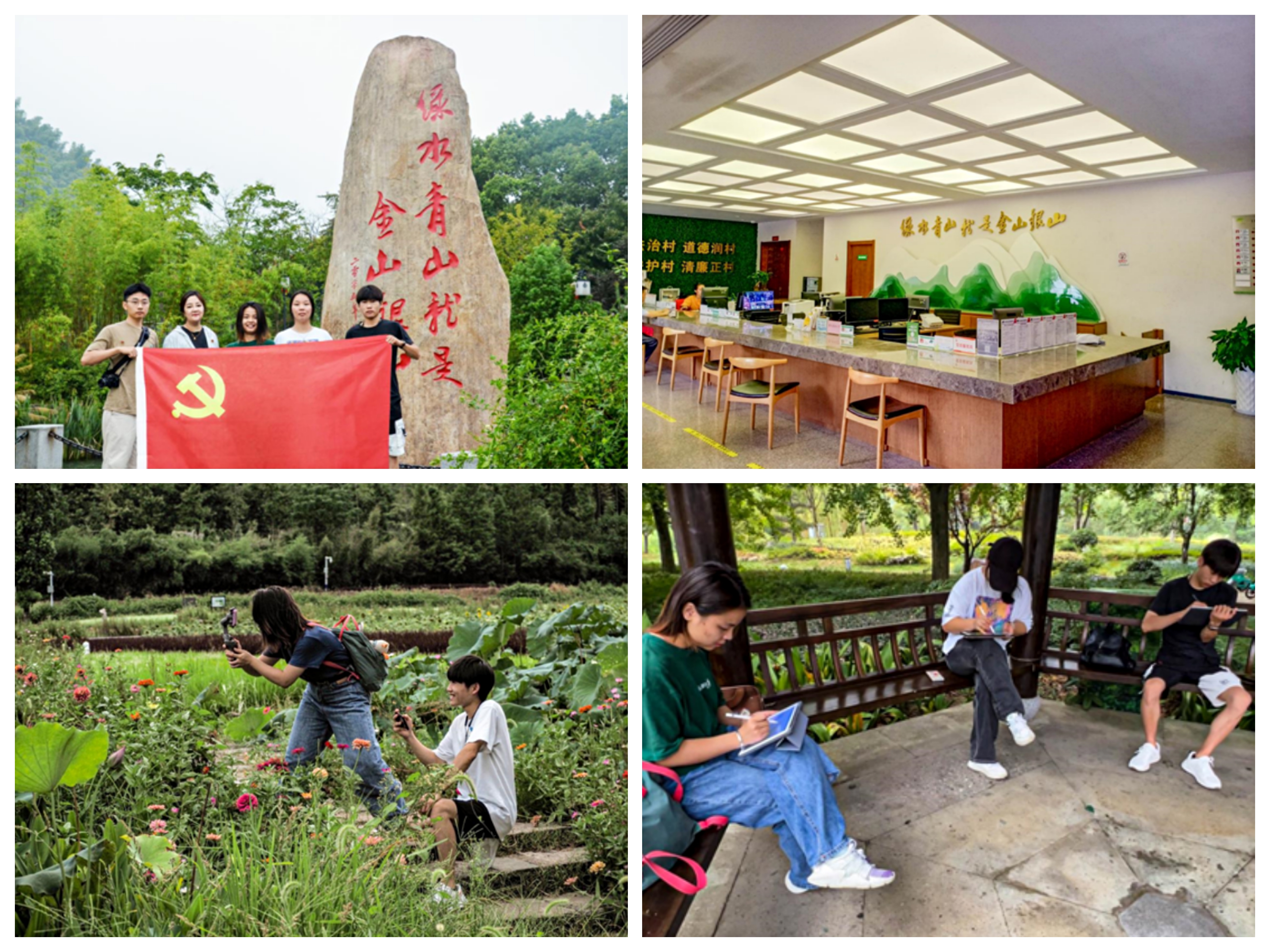 823 日,团队师生到达安吉县天荒坪镇余村。漫山遍野的竹林、清澈见底的溪流、五颜六色的农作物尽收眼底,村口矗立的一块石头,正面镌刻着2005815日习近平总书记到余村说的一句话:“绿水青山就是金山银山”!这就是“两山”理念纪念碑,纪念碑和眼前的景色相得益彰,印证着“绿水青山就是金山银山”。