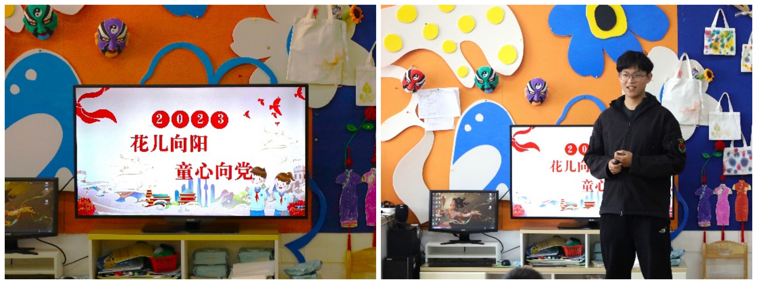 讲红色故事,传承红色精神。学院邀请校青年讲师团、应化213班王柯皓同学带领小朋友们认识祖国的地图、了解祖国的生日、理解五星红旗的含义,让爱国的炽烈火焰灼热着每个孩子的心脏,让爱国的种子在每一个孩子的内心种下。此外,王柯皓还分享了雷锋和刁兴宇的红色故事,帮助小朋友们深入了解中国优秀典范人物事迹,让民族精神深深根植在小朋友心中,让中华优秀传统美德薪火相传,生生不息。随后,王柯皓通过垃圾分类,保护环境等身边小事,教导小朋友们要从小事做起,共同守护我们美丽的祖国。
