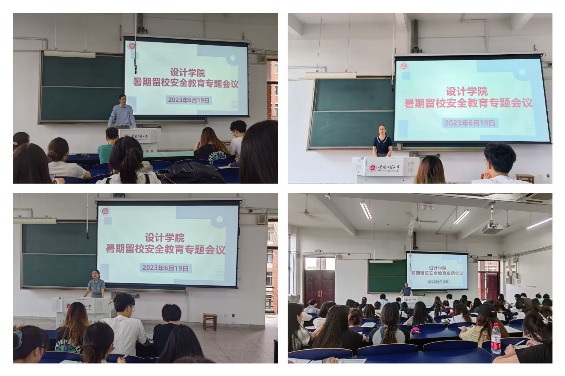为进一步落实学校关于暑期留校学生工作要求,提高学生安全防范意识,切实保障留校学生生活学习有序进行,规范管理学生暑期留校工作,设计学院于6月19日在6J215召开2023年暑假留校学生安全教育专题会议。学院党委书记胡家增,党委副书记彭海燕,教师代表、辅导员以及全体暑期留校本科生和研究生参加会议,会议由辅导员李荣杰主持。