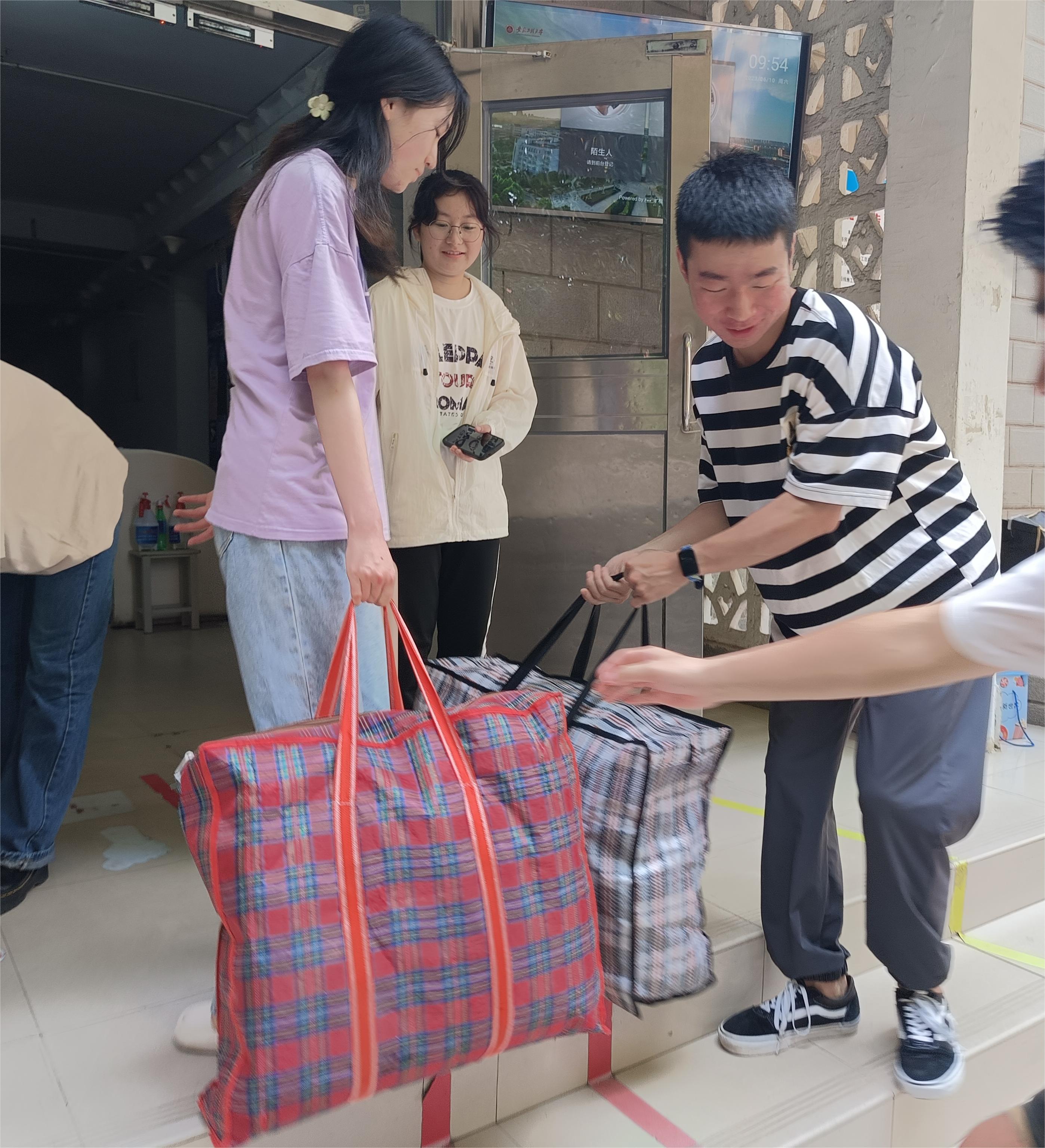 为深入学习贯彻习近平新时代中国特色社会主义思想,落实“三全六专”育人实践,积极发挥党员先锋模范作用。从6月初至今,设计学院学生党支部不断组织学生党员开展宿舍搬迁志愿服务,携手在宿舍搬迁中帮助同学搬运行李物品。