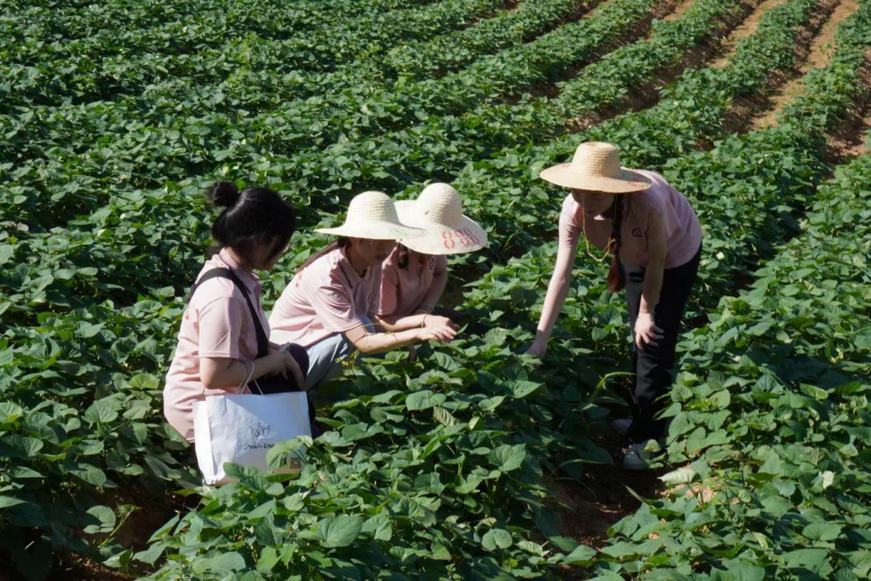 深入新林村一线,发挥产业“联农助农”。75日下午,团队来到了平铺镇新林村种植一线,考察红薯种植,感受种植户的淳朴与艰辛。通过实地考察,实践团了解到突破当地红薯产业发展瓶颈,最大限度发挥产业“联农助农”作用迫在眉睫。团队将致力于农产品品牌创新实践工作,希望可以通过新的设计理念和营销模式,带动产业发展,提高农产品附加值和销售量。