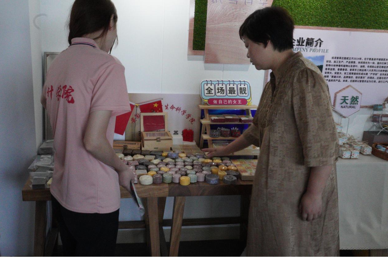 感受芬芳纸鸢,助力品牌建设。75日上午,团队实地参观了企业的生产基地、销售中心以及管理模式等。团队成员了解到庄园内大量种植的薰衣草、玫瑰、迷迭香等50余种国内外名优观赏类香料植物及香草茶、纯露、精油等纸鸢系列香草产品,对产品包装需求性比较强,包装设计改善空间大。通过与纸鸢香草庄园负责人汪琼的深入交流,讨论了产品包装设计风格需求,种类需求及相关IP形象的设计。实践团成员们信心满满,致力于用产品包装助力品牌建设,提升农产品格调,点亮农产品新发展方向,提升附加值。
