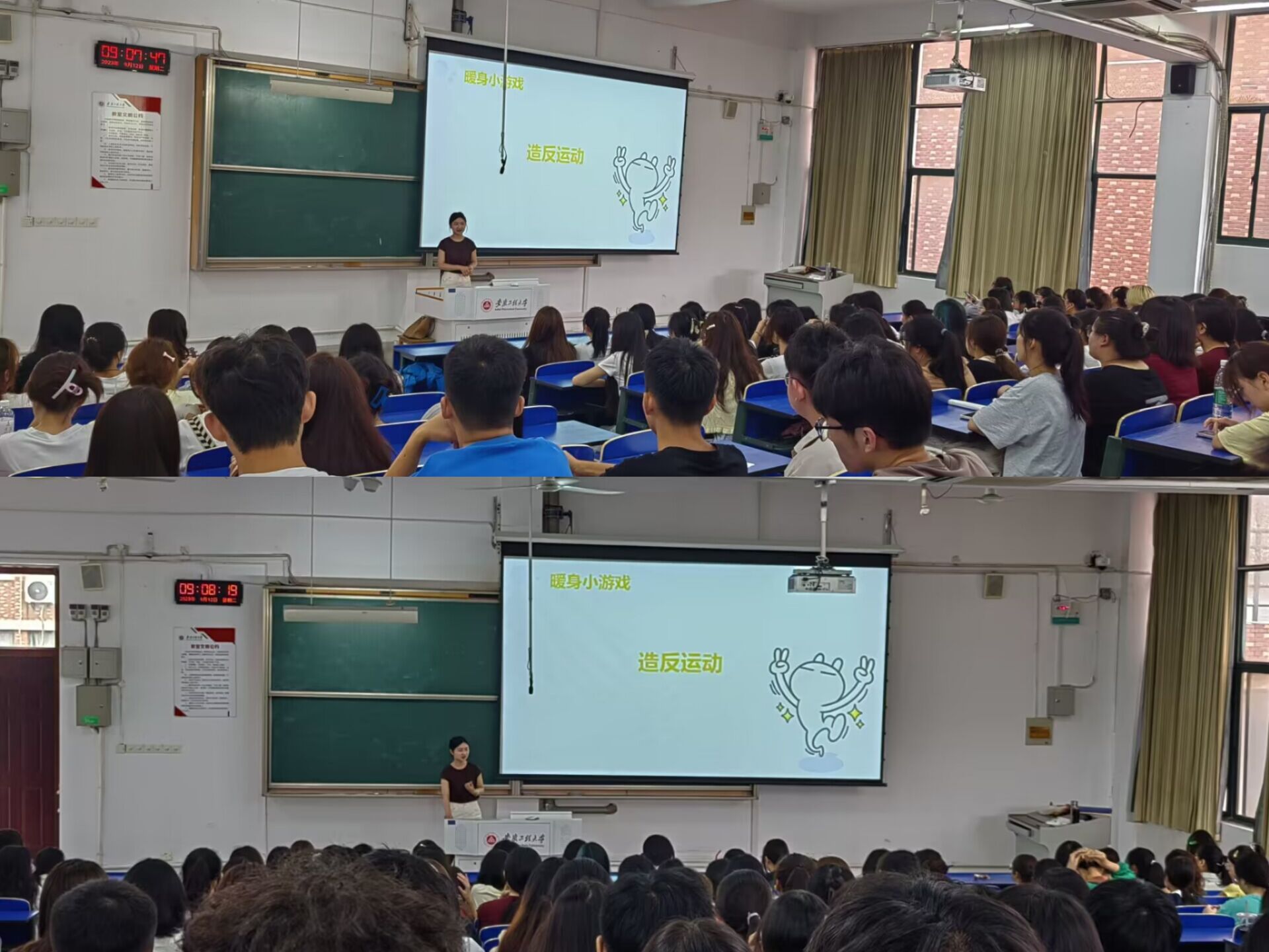 了帮助新生尽快适应大学生活,预防可能发生的心理问题912日上午,学院邀请心理健康教育中心的李梦菊、李梦圆两位老师为全体2023级新生心理健康教育讲座。两位专业老师从人际关系、食宿问题、大学恋爱等与大学生活息息相关的话题引出,对同学们在学习生活中可能遇到的心理问题进行了分析、解答与引导,并希望大家在未来的大学生活中,要对个人的生活、学习有清晰的规划,学会自我管理。报告会现场,两位老师还组织同学们进行了心理测试。