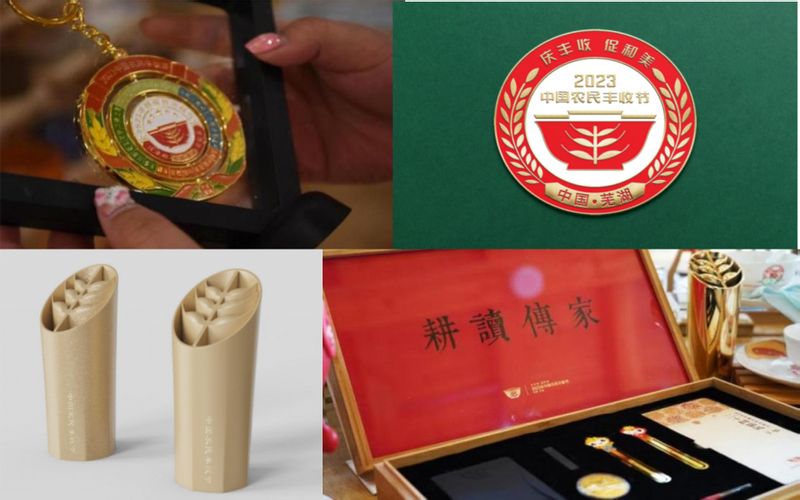 2023年3月,我院的王小元教授、钱涛副教授、刘华玉副教授和黄卫国老师就组建学生团队,进行丰收节文创产品的设计开发,50多名本科生、研究生参与,历时200多天,暑假期间也坚持全天无休,设计完成的文化产品涵盖办公文具、IP衍生品、儿童玩具、家居用品、3C产品、餐饮用具、旅游纪念品等60多个品类,开发制作1000余件文化创意产品。这些文创产品以深厚的中华农耕文化、丰富的农业资源、多彩的农民生活场景为创意素材,以趣味、实用、美观的方式,融入现代生活,让丰收文化变得更艺术、更时尚、更易传播。用文创的方式让本届丰收节起来,第一次大批量的实现乡村文创从概念到落地、从抽象到具形、从平面到立体、从点阵到矩阵,从单一产品到产品生态,让乡村文化既有颜值更有价值。