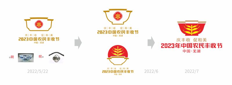 接下来的几个月里,共设计了50多个方案,20多轮与安徽省农业农村厅领导汇报与沟通, 522日在杭州,刘华玉副教授与安徽省农业农村厅领导一同将标志的设计方案向农业农村部领导做了汇报。最终,丰收碗、马头墙、麦穗元素构成的标志形象得到部领导的高度认可,并提出进一步修改的意见。此后经过多轮修改调整设计,直至7月底最终版logo修改完成。831日,中国农民丰收节组织指导委员会在合肥举行发布会正式发布使用。