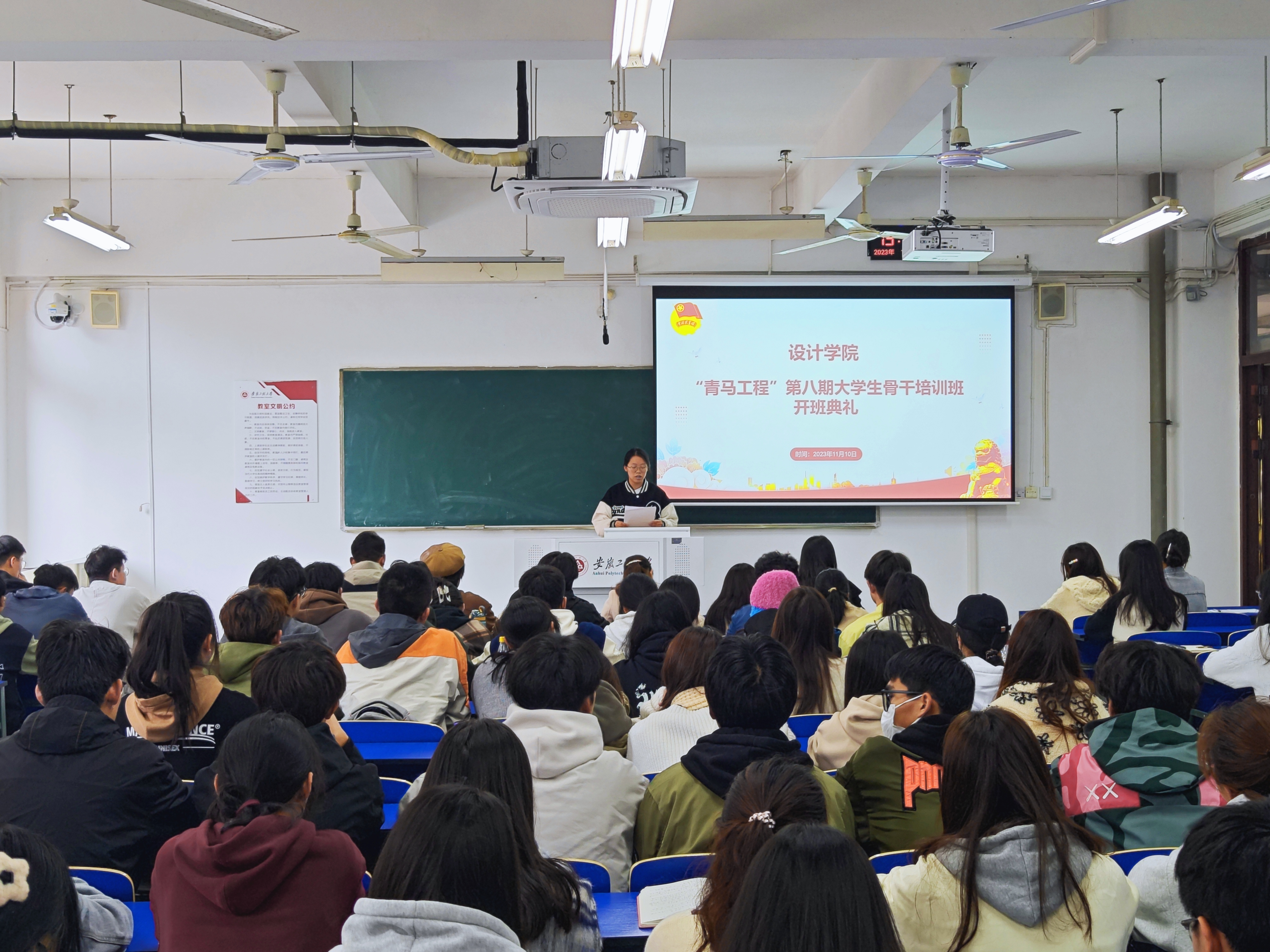 为全面落实学校“三全六专”育人实践,进一步推进青年马克思主义者培养工程,培养素质过硬的学生骨干,11月10日,设计学院“青马工程”第八期大学生骨干培训班开班典礼在6J110举行。学院党委副书记彭海燕、团委副书记田潇濛以及110余名学员参加典礼,班主任徐超主持开班仪式。